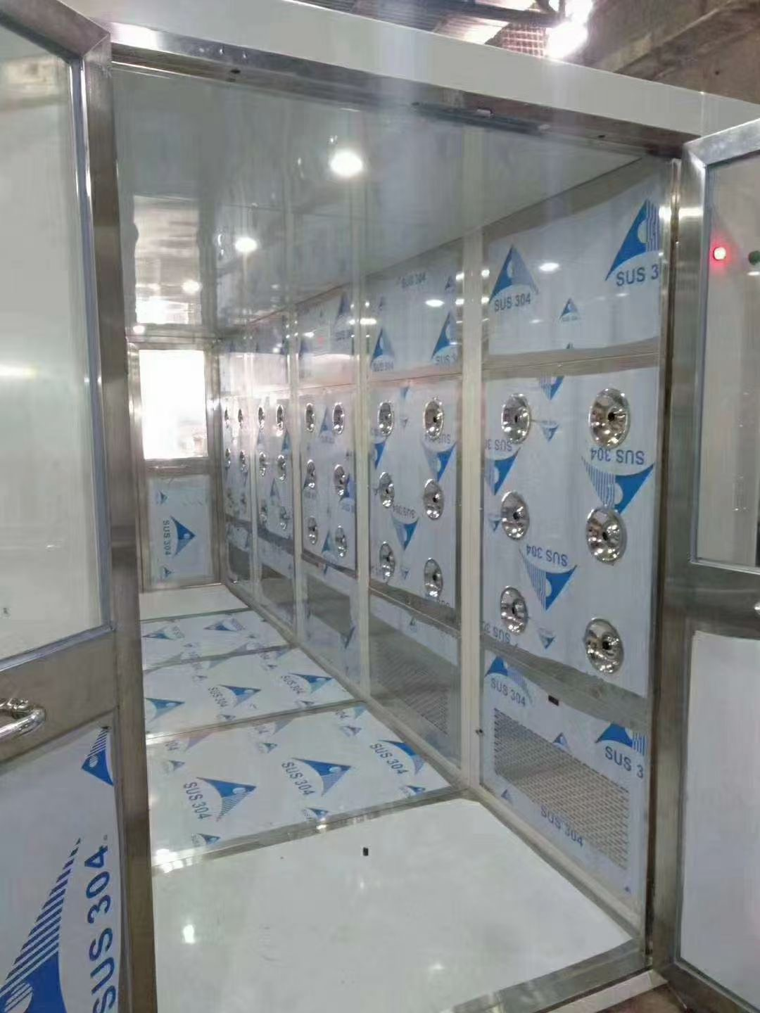 貨淋通道是為貨物進出潔凈區所設置的專用通道,可以有效的降低貨物進入潔凈區所帶來的污染問題,并同時起到氣閘室密閉潔凈室的作用。貨淋室通用性強,可與所有的潔凈室與潔凈廠房配套使用。工作原理:經高效過濾器過濾后的潔凈氣流由可旋轉噴嘴從各個方向噴射···